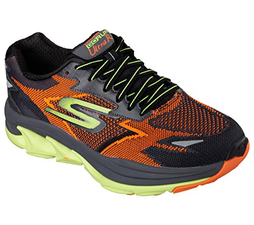 We've taken our ultimate neutral cushioning shoe and made it super durable for the road. Skechers GOrun Ultra Road combines a dual-density Resalyte® midsole with an enhanced traction outsole for optimal comfort as you run. Midsole: Dual-density Resalyte® provides maximum cushioning, comfort and added response. Outsole: Strategically placed rubber for durability and abrasion resistance in key strike zones. Fully drainable outsole system that allows for complete unrestricted air and water flow. Weight: 10.4 oz. per shoe in a men's size 9. 4mm heel drop height. 26mm forefoot height, 30mm heel height. Breathable Skechers Performance FITKNIT® upper. Synthetic overlays for added stability and durability. Reflective detailing.
